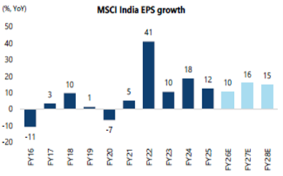 Le azioni indiane hanno registrato, dal gennaio del 2025, un modesto aumento del +2,5% in dollari rispetto al +30% dell'indice MSCI EM. A spiegare questa sottoperformance, la più importante degli ultimi vent'anni, sono alcuni fattori quali valutazioni elevate, un rallentamento ciclico della crescita e degli utili delle imprese, un deprezzamento della rupia indiana (-5%) e vendite massicce da parte degli investitori stranieri ($ 16 Md dall'inizio dell'anno e $ 30 Md su base annua). La partecipazione straniera nell'indice BSE-500 si attesta ora ai minimi degli ultimi dieci anni, pari al 19,5%. Sul fronte locale, la liquidità è buona, con afflussi che rimangono solidamente attestati a $ 80 Md dall'inizio dell'anno, di cui $ 3,2 Md di gettito fiscale mensile (rispetto ai $ 2,7 Md del 2024). Gli investimenti in azioni rimangono tuttavia elevati, a $ 24 Md, assorbendo il 50% circa della liquidità nazionale. Nel frattempo, la crescita degli utili delle società dell'MSCI India FY03/26 rivista al ribasso del 4% è stata portata al 10% a causa delle perturbazioni climatiche, della minore domanda delle famiglie e della flessione dei tassi di riferimento che ha pesato, nel breve termine, sulla redditività del settore bancario. In futuro, l'EPS dell'indice MSCI India FY03/27 dovrebbe crescere del 16% dato che l'allentamento delle condizioni finanziarie, l'aumento della domanda dei consumatori e i benefici derivanti dalla riduzione dell'aliquota GST, insieme alla ripresa della spesa rurale e alla deregolamentazione bancaria, dovrebbero stimolare la crescita degli utili. Il premio dell'indice MSCI India rispetto all'indice MSCI EM del 105% è tornato ora corrispondere al premio medio decennale pari al 62%. Stiamo iniziando a vedere profilarsi delle opportunità nei settori finanziario, automobilistico e ospedaliero, dove le valutazioni sono interessanti (P/E del Nifty-50 18,2x).